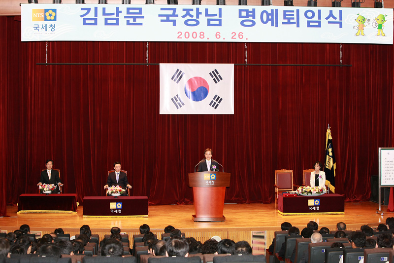 김남문 국세청 법인납세국장은 26일 10시 2층 대강당에서 한상률 국세청장을 비롯해 김갑순 서울청장 등 본·지방청 간부들이 참석한 가운데 열린 명예퇴임식에서 이같이 서두를 밝히고 28년의 공직생활을 1시간이라는 짧은 시간에 회고했다.