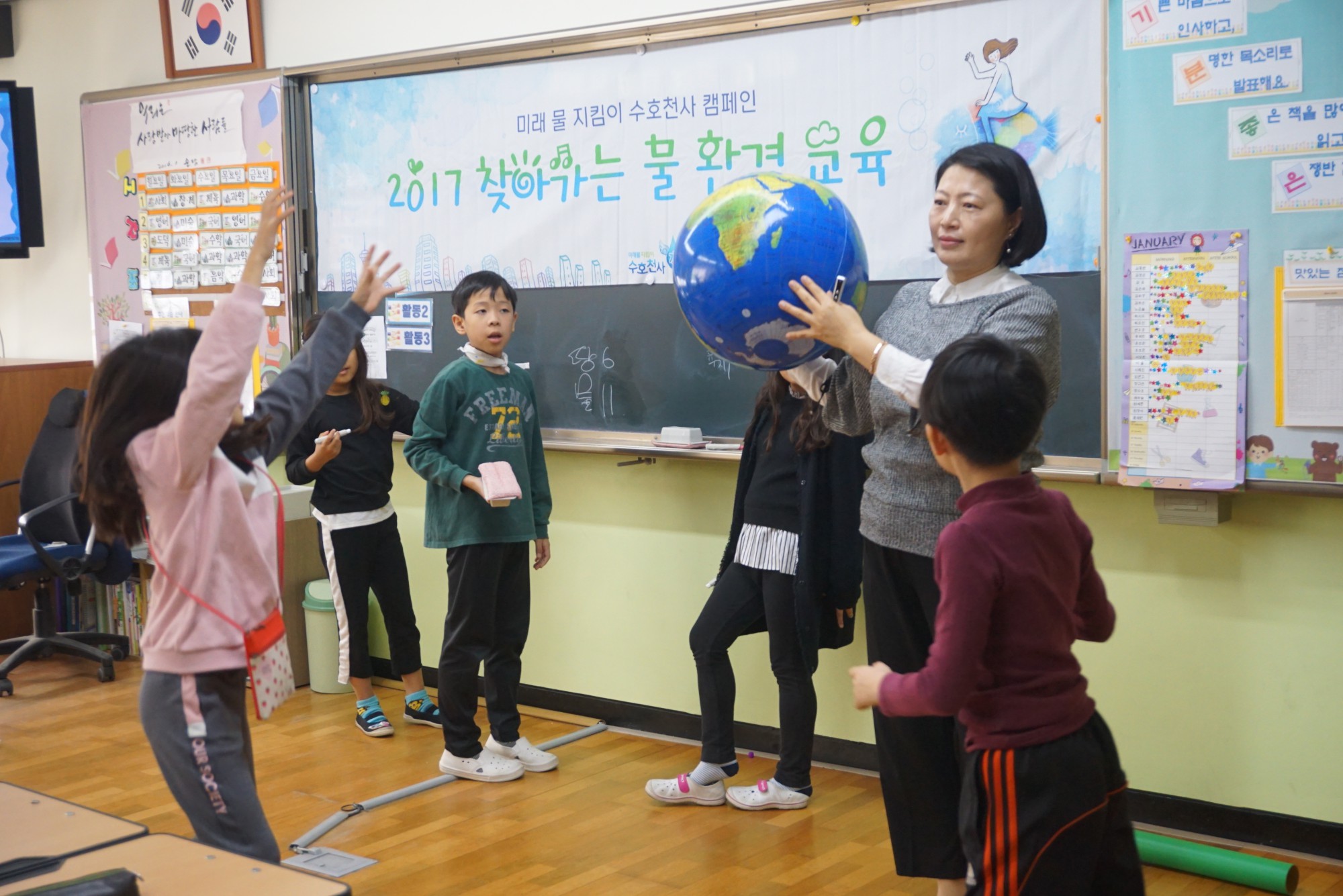 '미래 물 지킴이 수호천사'는 오비맥주가 물의 소중함을 일깨우기 위해 전국 초등학교를 찾아가 미래 세대인 어린이를 대상으로 시행하는 환경교육 프로그램이다.