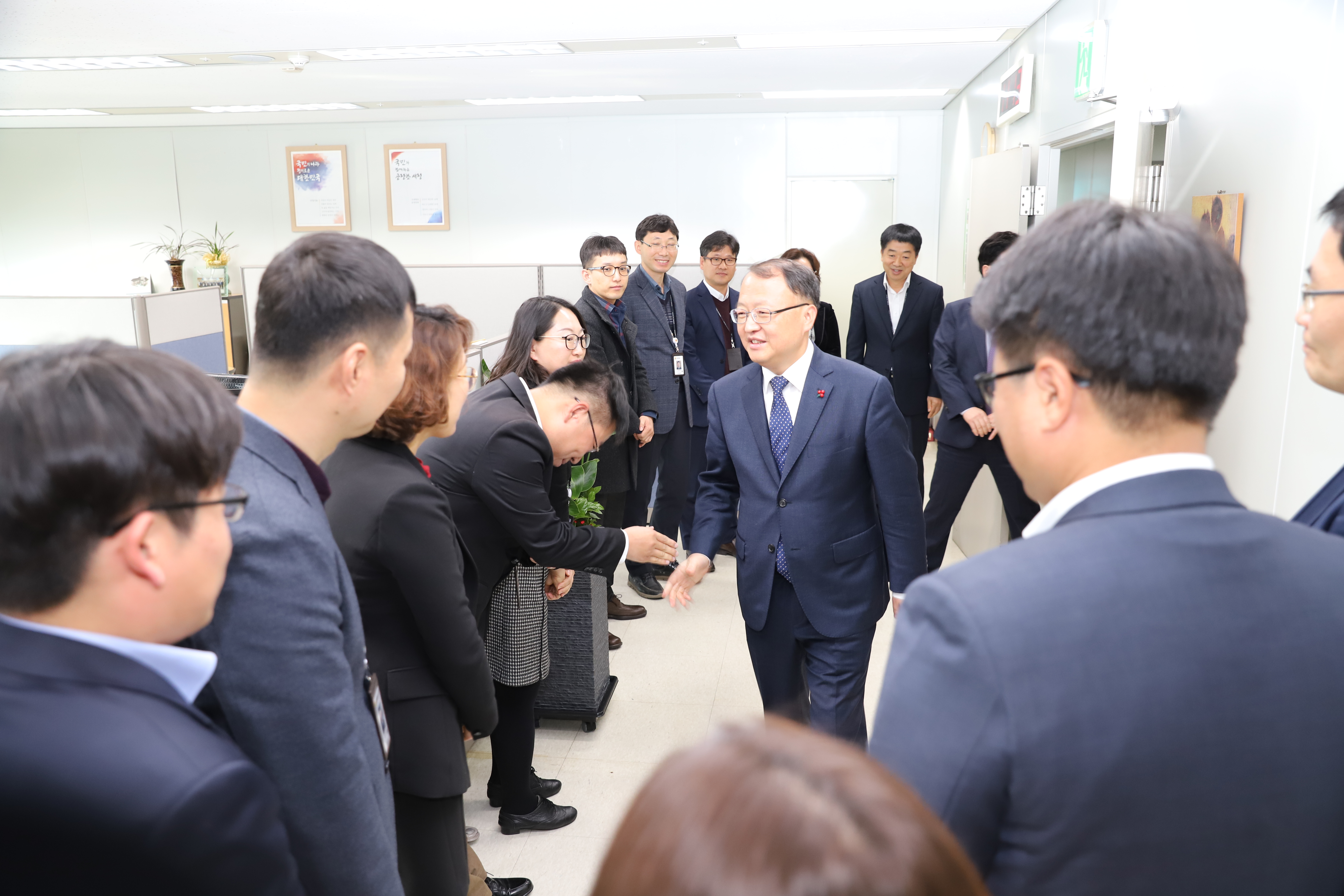 이어 한 청장은 각 국·과 사무실을 방문해 직원 개개인에게 일일이 악수를 청하며, 그간의 노고를 격려했다.