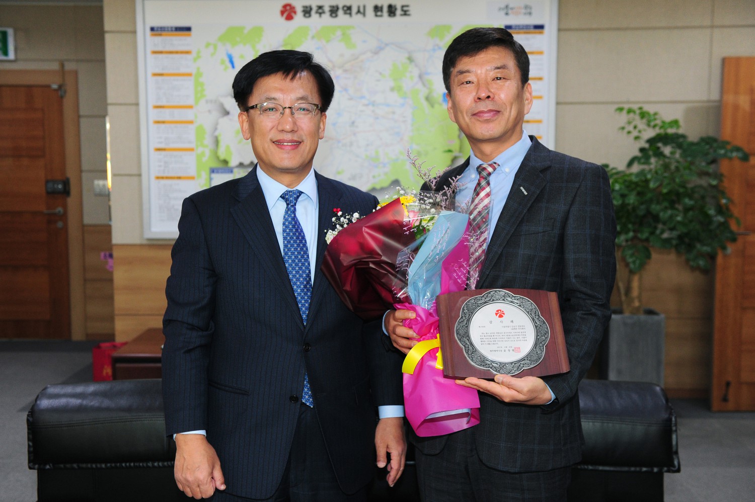 광주광역시 박병호 행정부시장은 이날 오전 광주시청에서 오비맥주 조승훈 호남권역본부장에게 15년간 '빛고을 장학금'을 후원해 온 공로를 인정해 감사패를 수여했다.