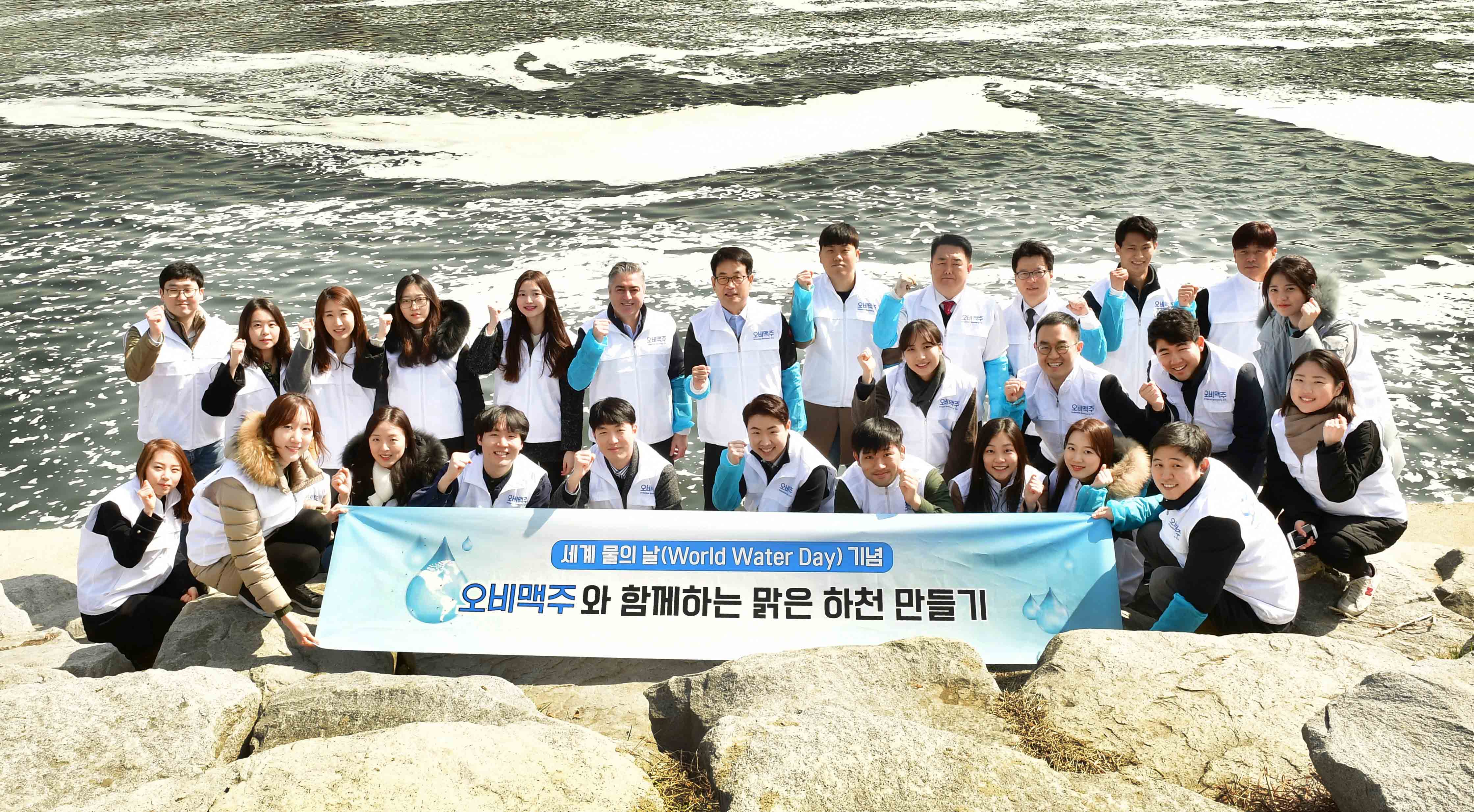 경기도 이천, 충북 청주, 광주광역시에 위치한 오비맥주 3개 생산공장 직원들도 '세계 물의 날'을 기념해 공장 인근 하천 일대를 돌며 하천 둔치 쓰레기 줍기와 수상 오물제거, 하천 밑바닥 청소 작업을 실시하고 물 절약 실천을 위한 환경표어 대회도 개최했다.
