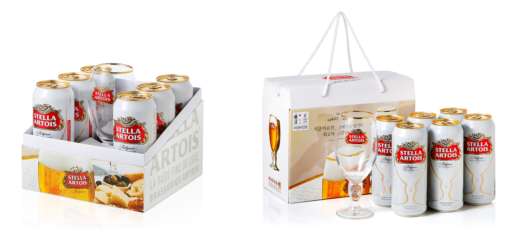 스텔라 아르투아 500ml 캔 6개와 전용잔 챌리스 1개로 구성됐다.