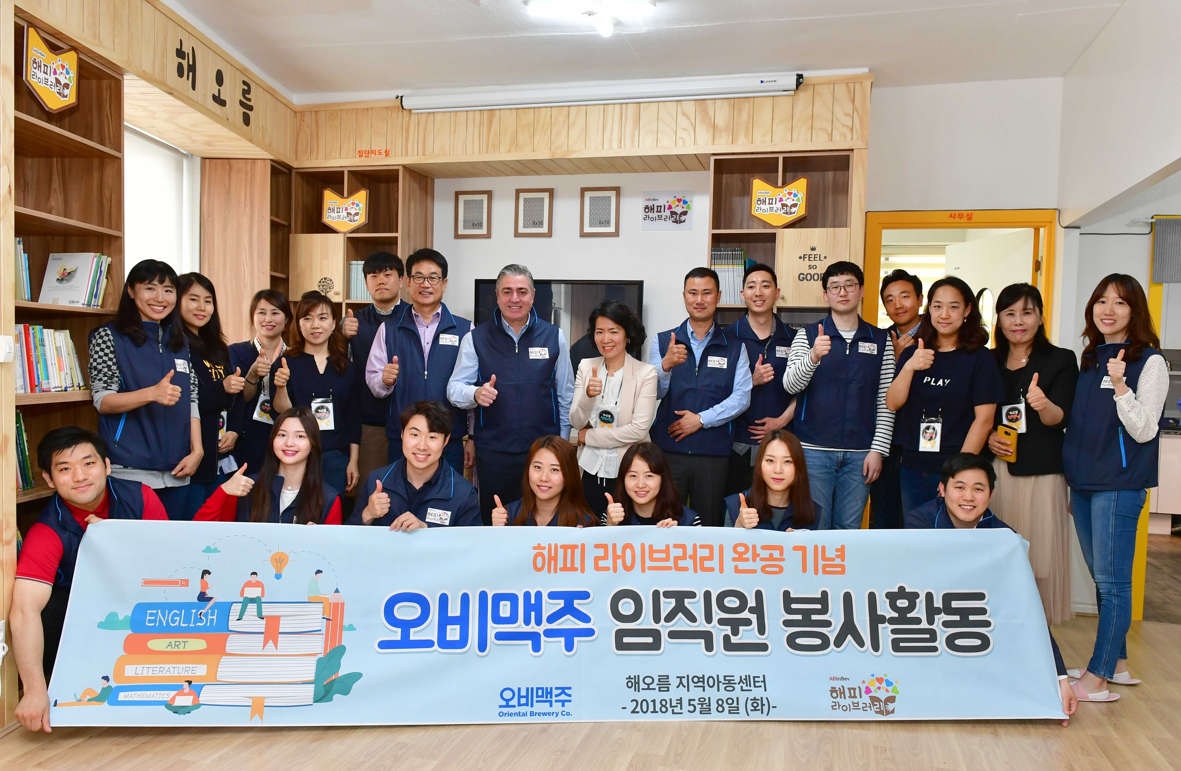 한편 2016년 첫 선을 보인 '해피 라이브러리'는 오비맥주가 돌봄이 필요한 지역아동들의 방과후 학습환경 개선을 위해 낙후된 지역아동센터를 최신 시설로 새단장해 주고 각종 교육 자재와 도서 등을 무상 제공하는 사회공헌 프로그램이다.