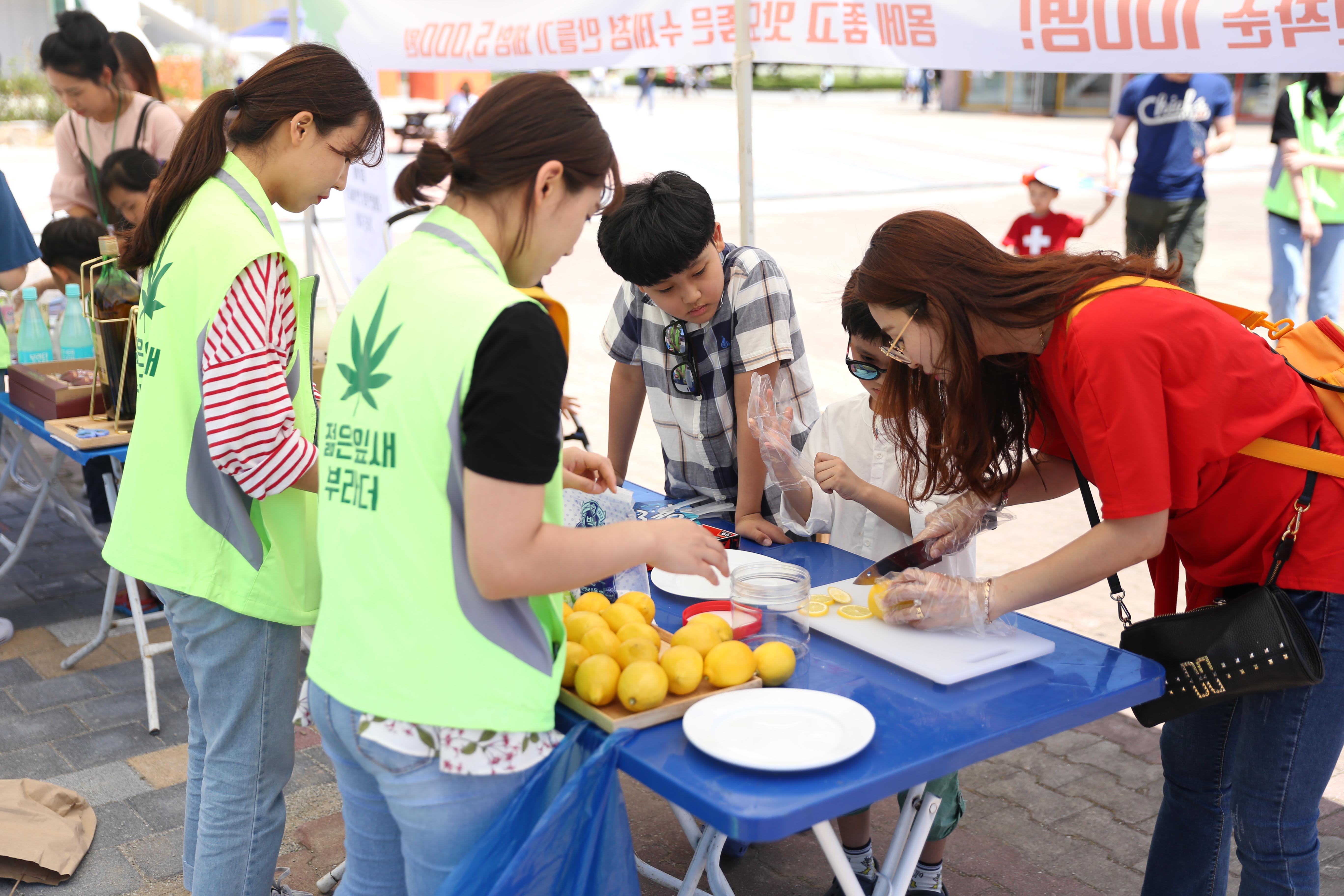 보해 젊은잎새 봉사단은 패밀리랜드를 찾은 방문객들이 레몬청을 직접 만들 수 있도록 준비했다. 참가자들은 직접 썬 레몬에 설탕을 부어 자신만의 수제 레몬청을 만들었다. 특히 대학생들이 어린이를 위한 성금을 마련한다는 사실을 듣고 격려해 주면서 적극 동참했다.