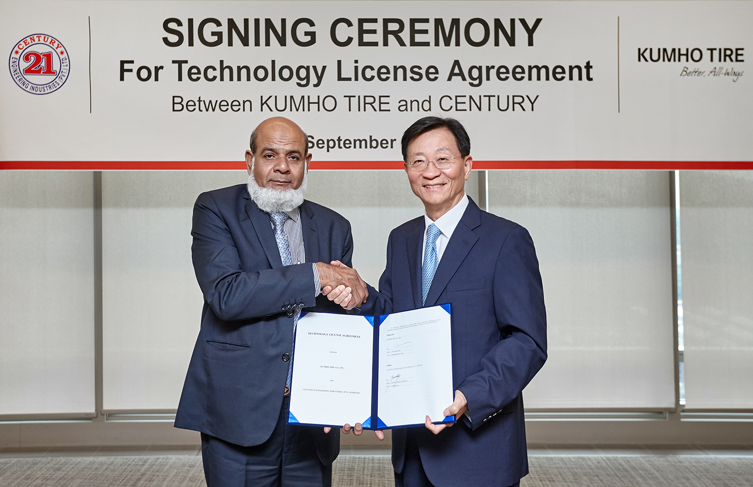 금호타이어와 계약을 맺은 센츄리는 자동차 배터리를 비롯해 주로 배터리 사업을 진행하는 파키스탄의 제조 기업으로 사세 확장에 따라 지난해 5월부터 신규 사업으로 타이어 공장 설립을 추진해 왔다. 그 과정에서 제조 기술 확보를 위해 글로벌 타이어 업체들과의 거래 타진 중 금호타이어의 기술력을 높이 평가하게 되어 기술 이전 제안이 이뤄졌다.