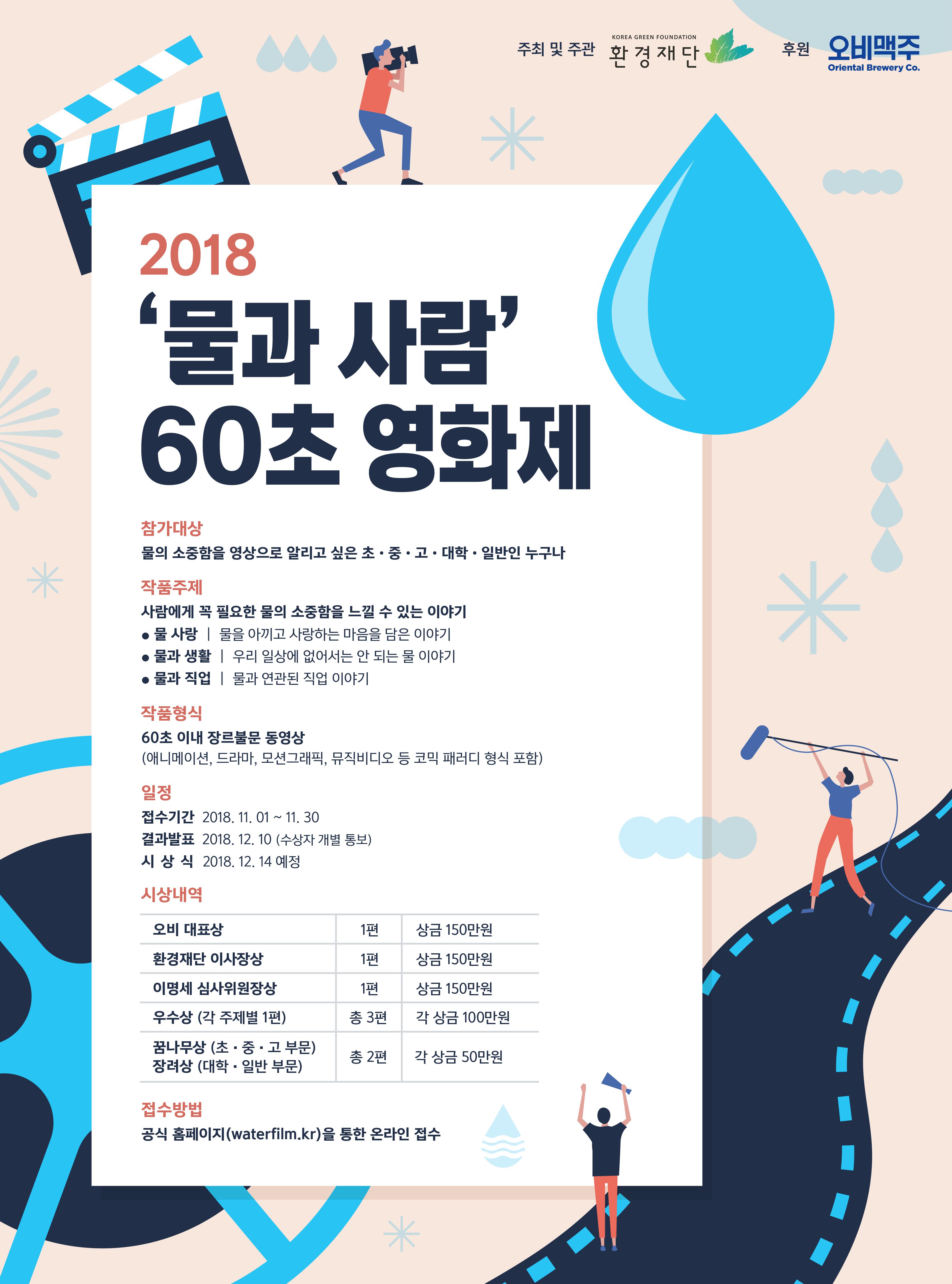 '물과 사람 60초 영화제' 출품은 11월1일부터 30일까지이며 자세한 내용은 영화제 공식 홈페이지와 페이스북을 통해 확인할 수 있다.