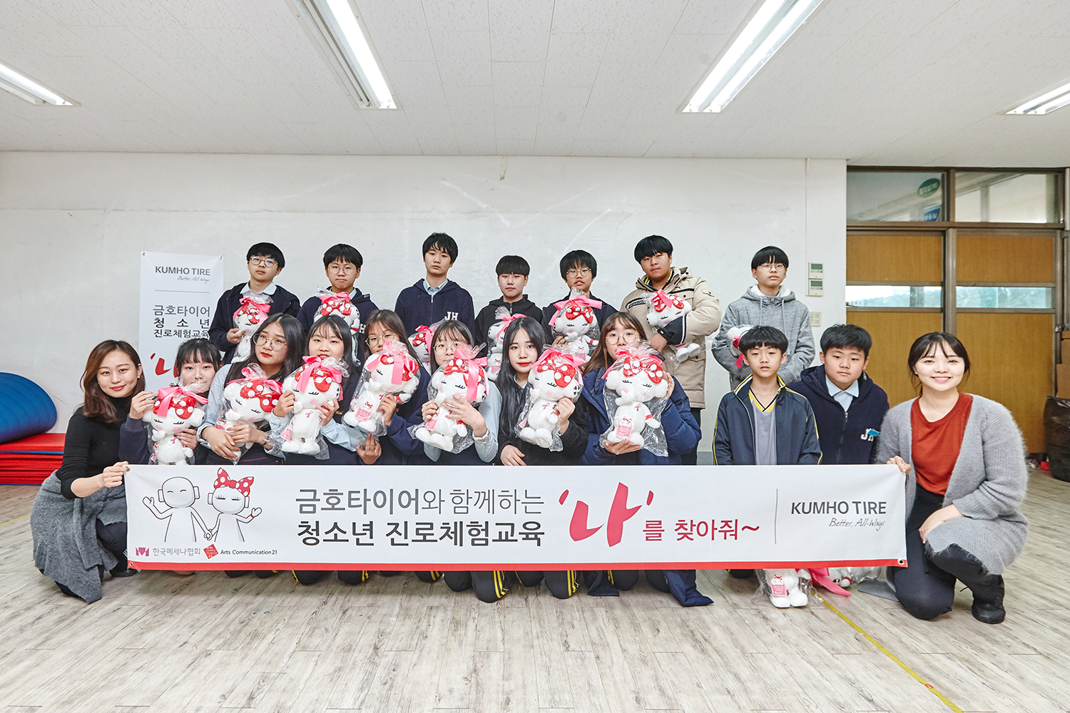 금호타이어는 지난 13일 서울 중랑구 중화중학교에서 이 학교 1학년 학생들을 대상으로 무용을 기초로 한 놀이형 프로그램 '나를 찾아줘'를 실시했다.