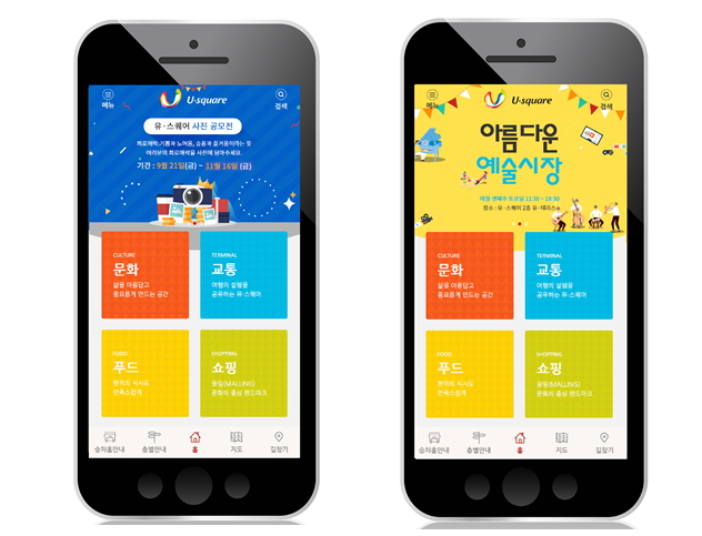 또한 교통 앱과 연동돼 시간 확인 및 버스 예약이 가능하며, 유·스퀘어 문화관의 다양한 공연, 전시 소식도 받아볼 수 있다.