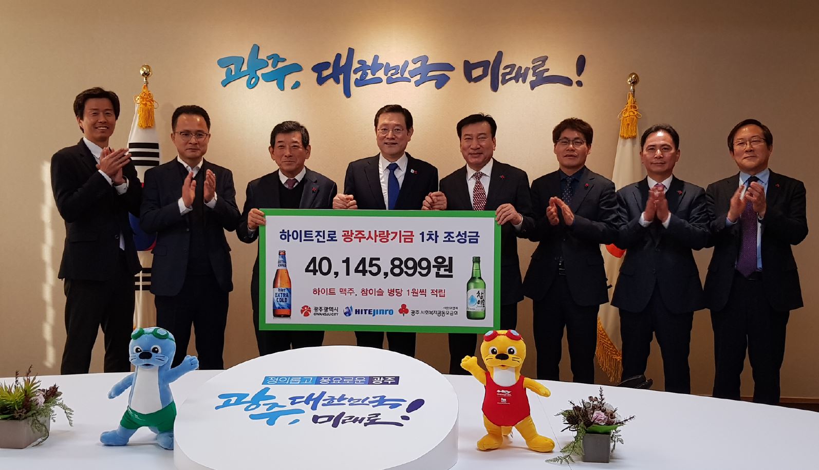 하이트진로(주)는 25일 광주시청 시장실에서 '하이트진로 광주사랑기금 1차 조성금 전달식'을 가졌다.