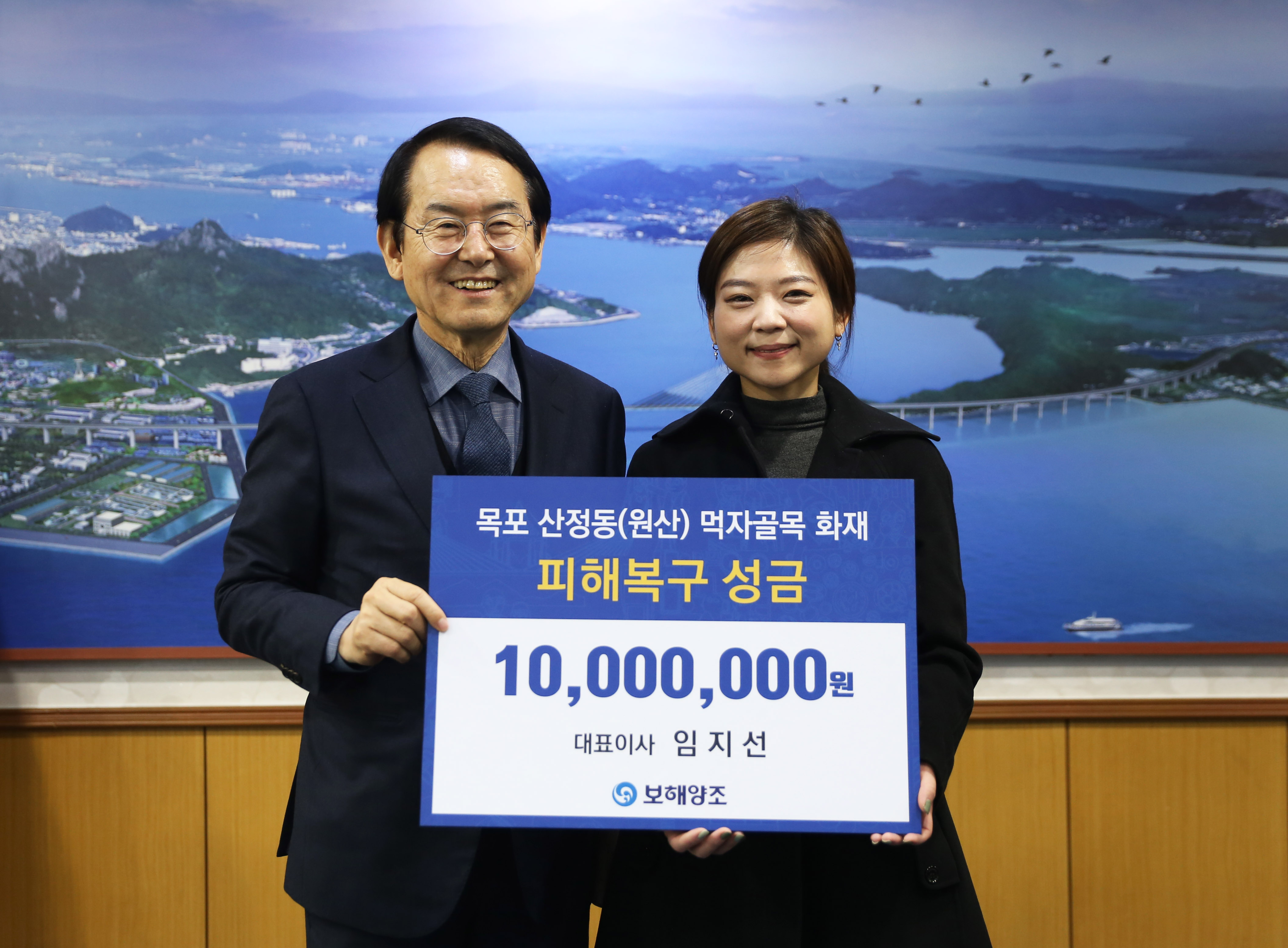 보해양조 임지선 대표가 지난 7일 화재로 큰 피해를 겪은 목포 상인들을 위해 개인사재로 목포시에 성금을 기부했다.
