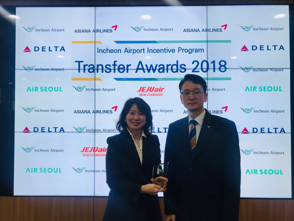'환승객 증대 우수 항공사' 선정은 인천공항의 네트워크 확대 및 환승객 증대를 위해 인천공항공사에서 매년 시행하고 있는 항공사 인센티브 제도로, 2018년 한해동안 인천공항 이용객 중 24시간 이내 환승한 승객 수를 기준으로 전년 대비 실적이 우수한 항공사에 수여된다.