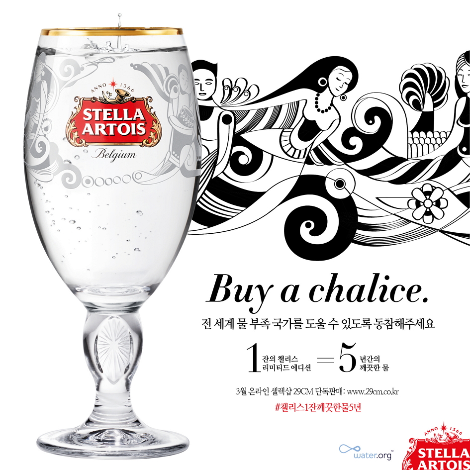 스텔라 아르투아는 이번 캠페인을 위해 캄보디아, 우간다, 브라질 3개 국의 아티스트가 참여해 식수 문제에 대한 이야기를 그림으로 풀어낸 챌리스 전용잔을 특별 제작했다.