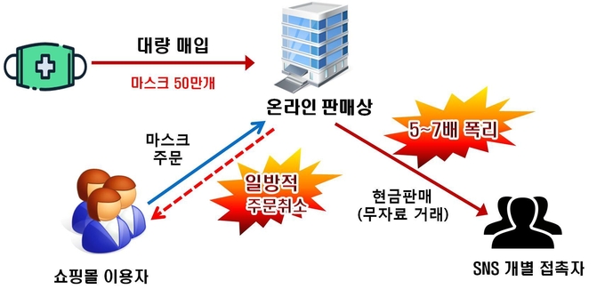 이들은 포털사이트의 중고거래 전문 카페를 통해 마스크를 판매하면서 현금 결제를 유도하고, 구매수량에 따라 가격 조건을 달리해 마스크를 개당 3천500~5천원으로 판매함으로써 큰 수익을 거뒀다.