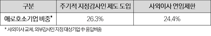 올해부터 시행되는 지정감사인 제도, 사외이사 연임 제한 등 규제 강화도 기업들에겐 부담이다.