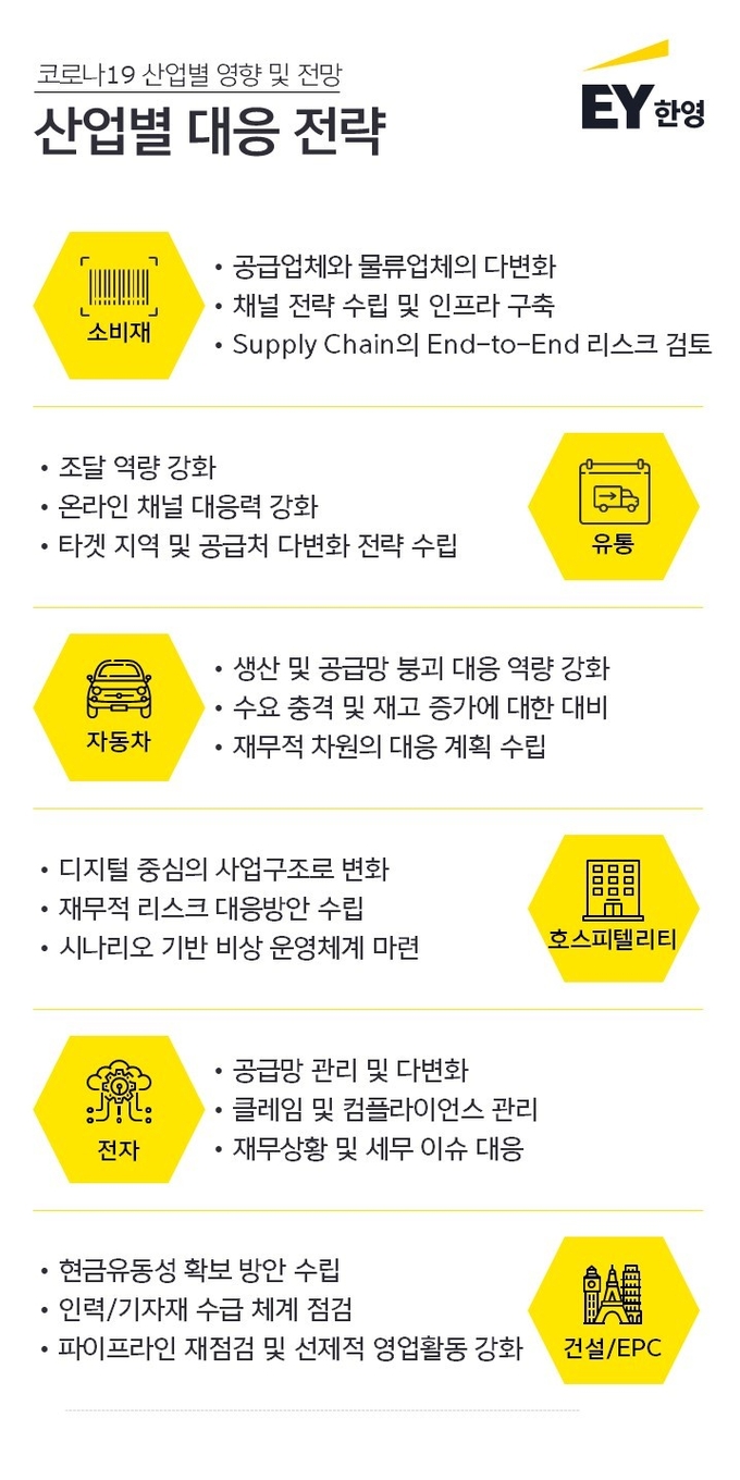 EY한영은 이같은 내용이 담긴 보고서 ‘코로나19의 세계적 확산이 국내 각 산업에 미치는 영향과 전망, 산업별 대응 방안’을 공개했다고 13일 밝혔다.
