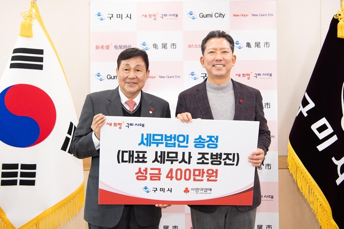 조병진 세무법인 송정 대표세무사가 지난 15일 구미시에 성금 400만원을 기탁하는 등 지역사회 나눔 실천에 앞장섰다.