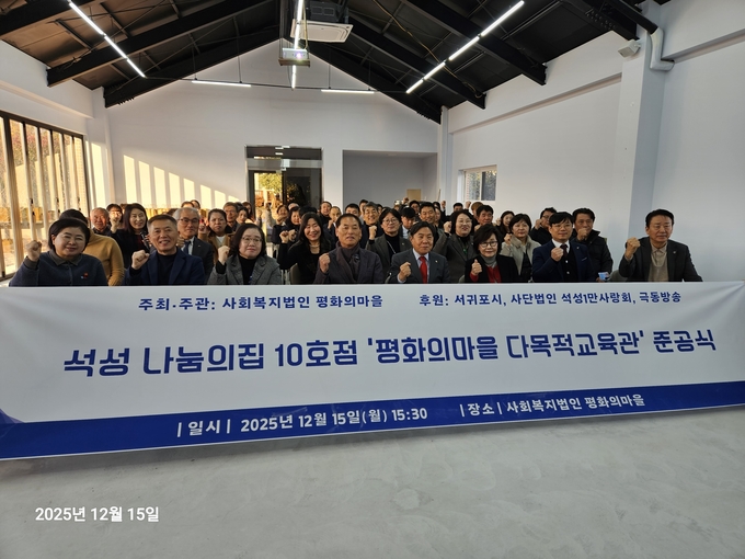 이번 ‘석성 나눔의 집 10호점’은 서귀포시 ‘평화의 마을’에서 일하고 있는 30여 명의 지적발달장애인에게 직무교육을 하는 교육장과 휴식공간으로 이용되는 다목적교육관으로 운영될 예정이다. 석성일만사랑회는 이번 다목적교육관 준공에 2억 원을 지원했다.