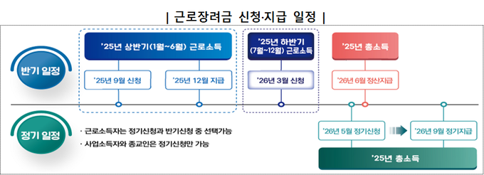 한편, 상반기분 근로장려금을 신청하지 못한 경우라면 하반기분 신청기간인 2026년 3월1일~16일까지 또는 정기분 신청기간인 2026년 5월1일~6월1일까지 신청할 수 있다.