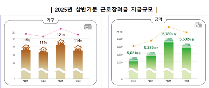 2025년 귀속 반기분 근로장려금 5천532억원이 114만 가구에 조기 지급된다.