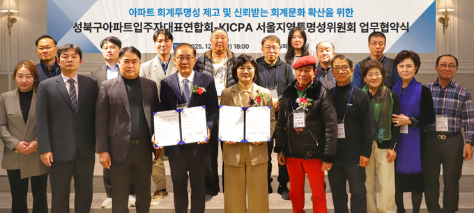 한국공인회계사회 서울지역투명성위원회(위원장·엄은숙)는 지난 19일 서울 성북구 서희스타힐스에서 성북구아파트입주자대표연합회(연합회장·윤정철)와 업무협약을 체결했다고 22일 밝혔다.