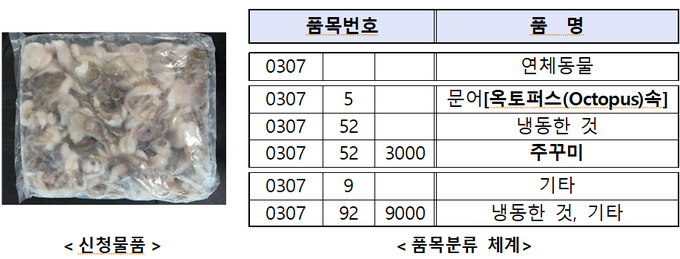이날 관보에 게재된 품목분류 변경고시 개정안에서는 주꾸미를 절단해 소매포장한 후 냉동한 물품에 대한 심의결과가 게시됐다.