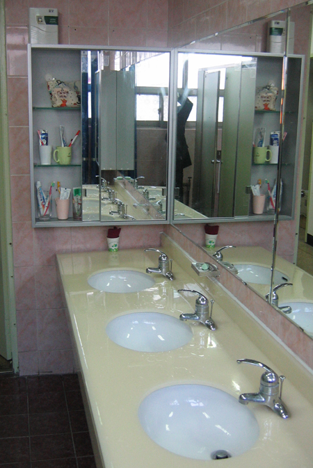 또, 동작서 화장실은 모두 비데로 교체해 직원들을 생각하는 마음이 정말 꼼꼼함에 감탄을 금치 못한다. 가장 많이 이용하는 2층 여자 화장실의 경우엔 세면대 4개가 연결되어 있는 것으로 교체했고 컵이나 칫솔 등을 보관할 수 있는 보관대를 두 개 설치, 유용하게 활용할 수 있게 했다.