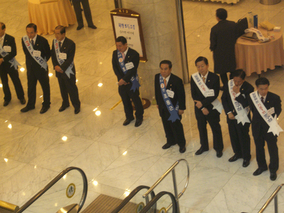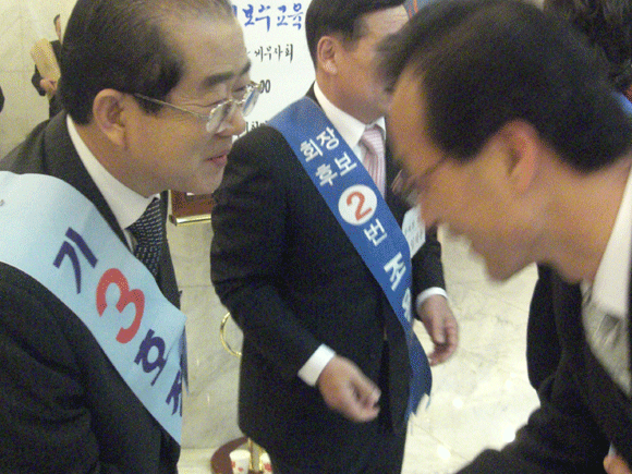 [중부회 행사에서 각 후보진영이 회원들을 맞이하기 위해 미리 도열해 있다]