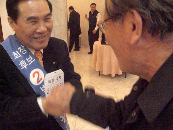 27일 중부지역(경기도·강원도) 회원을 대상으로 하는 선거는 서울 여의도 63빌딩 국제회의장에서 회원들의 큰 관심속에 회장후보 3명과 런닝메이트 부회장 9명이 오전 11시부터 선거장소에 도착, 회원들의 지지를 호소했다.