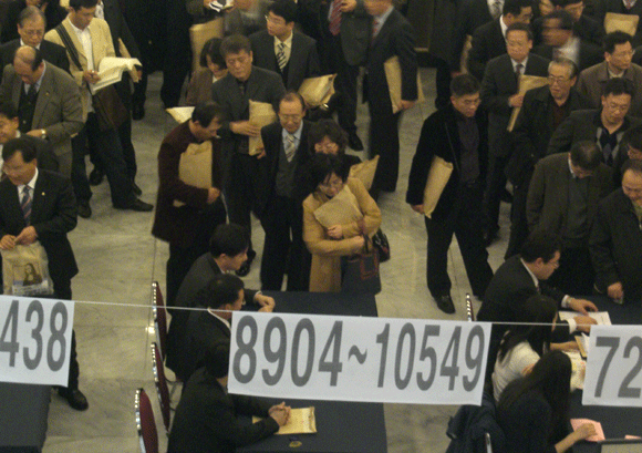 [투표를 하기 위해 줄을 서 있는 중부회 회원들]