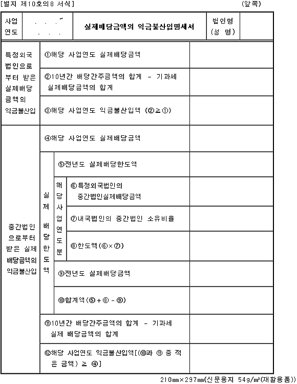 ․ 실제배당금액의 익금불산입명세서(별지 제10호의8 서식)