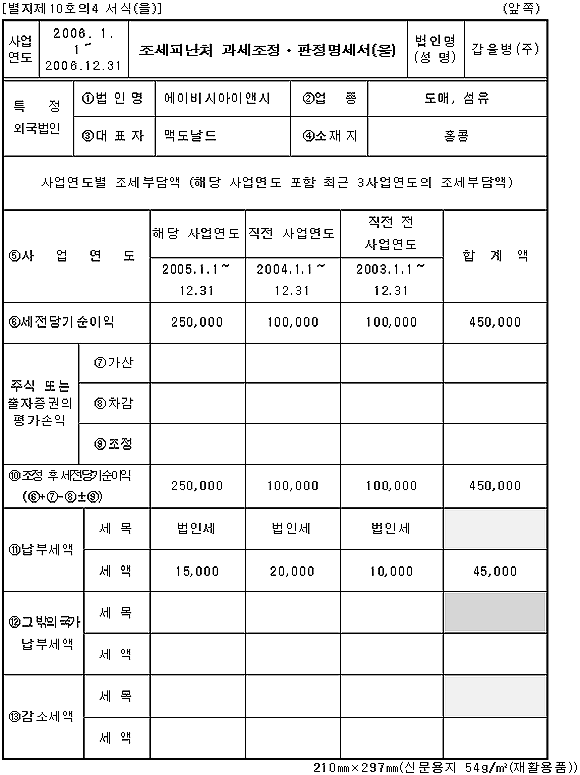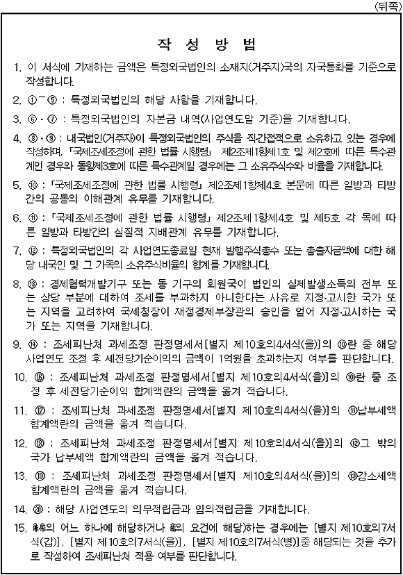 ․ 조세피난처 과세조정·판정명세서(갑)〔별지 제10호의4 서식(갑)〕