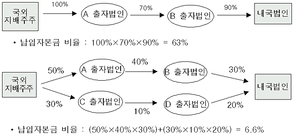 ․ 50%미만 소유하는 경우에는 각 단계의 지분비율을 모두 곱하여 산출함
