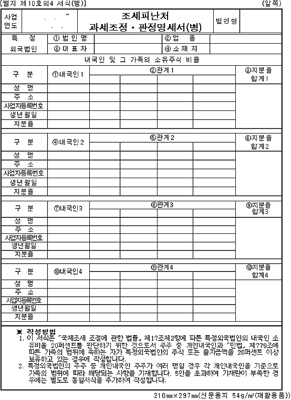 ․ 조세피난처 과세조정·판정명세서(병)〔별지 제10호의4 서식(병)〕