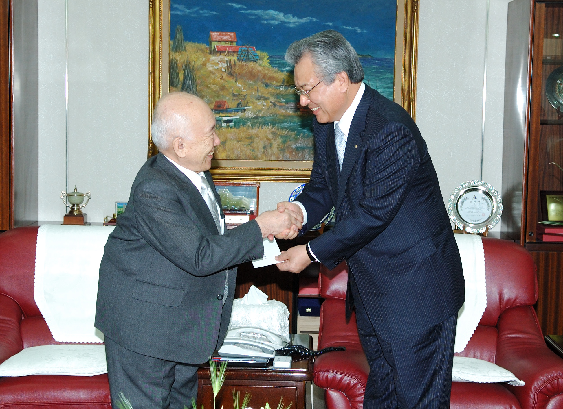 신정택 부산상공회의소 회장은 4월 5일(목) 오전 10시 30분 부산상의 회장실에서 ‘우리겨레하나되기 부산운동본부’ 김동수 상임대표와 이정이 공동대표를 접견하고 올해 5월중 준공예정인 북녘(평양)항생제공장 건립지원금을 전달했다.
