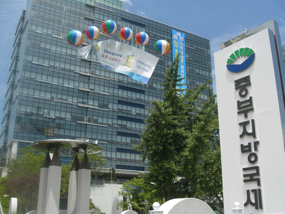 △청사 잔디밭에 마련된 준공식장에 유관기관장과 국회의원 등은 물론 역대중부청장 등이 참석해 한층 의미 있는 준공식으로 거듭났다. 지난 20일 전국이 장마권에 접어드는 등 자칫 준공식이 雨中에 열리지 않을까 우려됐으나 준공식 당일 오전에는 화창하다 못해 초여름 따가운 햇살이 내리쬐는 등 쾌청한 중부청의 앞날을 예고.