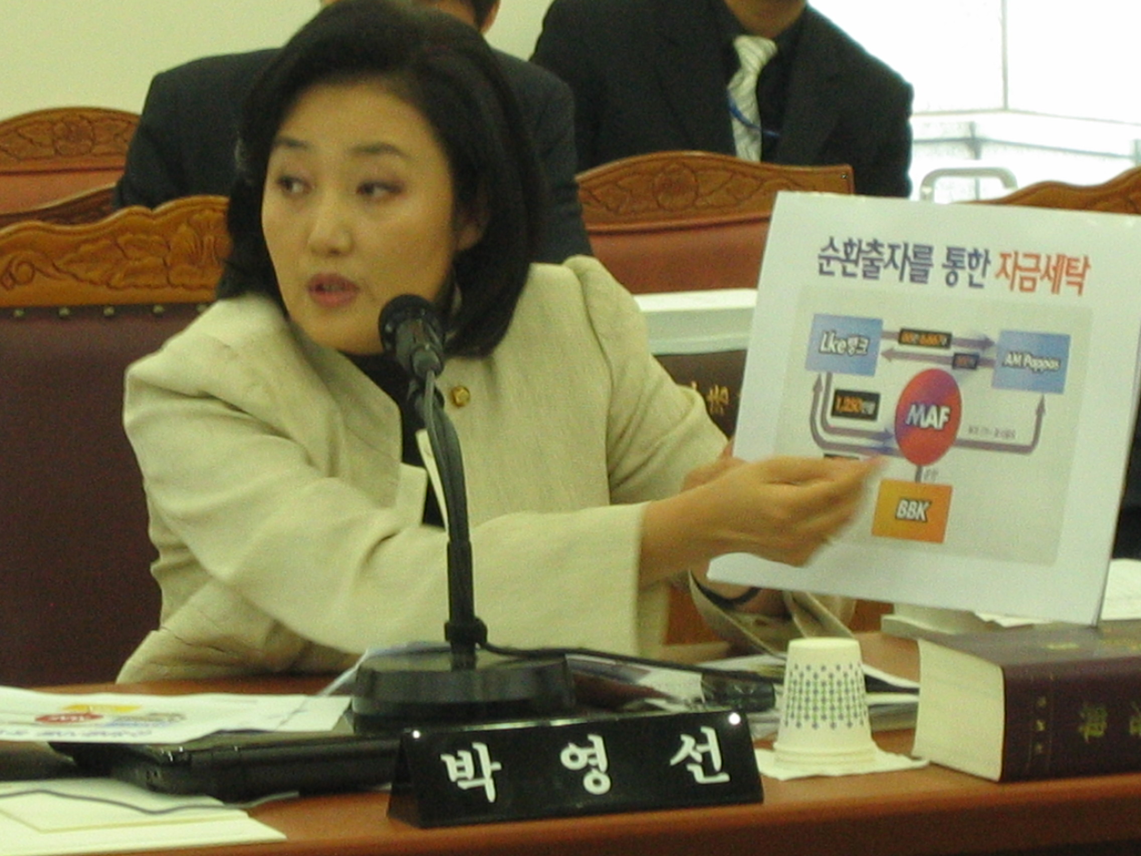 국회재경위 국세청 국감에서 박영선 의원(민주신당)은 “금감원 검사 자료와 미국에서 진행 중인 재판에서 이명박 후보측이 제출한 자료를 분석한 결과 LKe(엘케이)뱅크가 마프펀드의 전환사채를 매입하고, 마프펀드 자금이 에이엠 파파스에 유입되고 에이엠 파파스가 엘케이뱅크 주식을 매입하는 순환출자 고리를 만든 것으로 확인됐다”면서 “이같은 과정에서 마프펀드의 자금이 에이엠 파파스를 통해 이명박 후보 개인 몫으로 둔갑하고 전환사채 매입을 통해 엘케이뱅크에 대한 지배권은 그대로 유지하고 있다”고 주장했다.