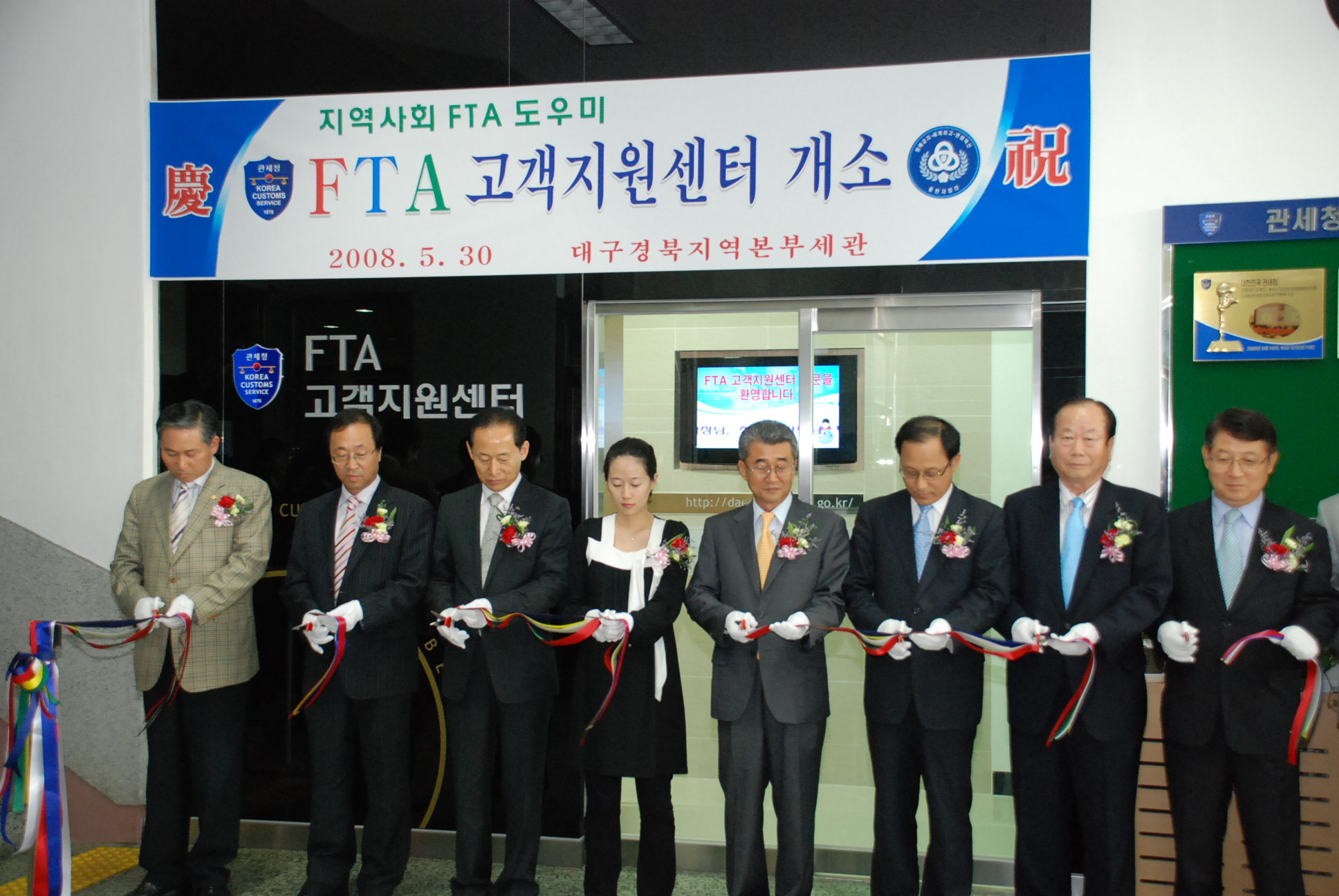 한편, 이날 문을 연 대구세관 「FTA 고객지원센터」는 FTA 상담관, 정보관, 홍보관, 학습관 등의 고객 편의시설을 모두 갖추어 놓았는데 개소식에는 허용석 관세청장을 비롯 김범일 대구시장, 김관용 경북도지사, 이인중 대구상공회의소회장, 대구무역협회지부장, 경북대학교 상경대학장, 영진전문대학장 등 대구시내 기관장들도 참석해 FTA 이행 중심기관인 대구세관의 활발한 역할수행에 대해 격려를 해 주었다.
