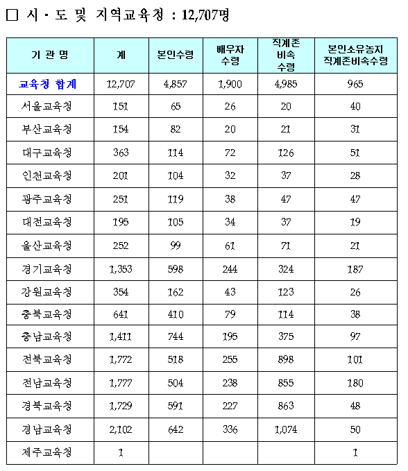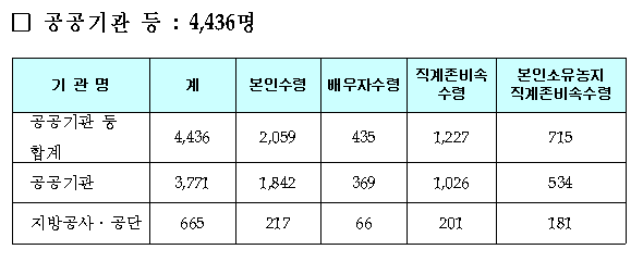 한편, 공공기관(지방공기업 포함) 임직원이 쌀 직불금 수령·신청을 자진 신고한 인원은 모두 4천436명으로 공무원과 합하면 총 4만9천767명이다.