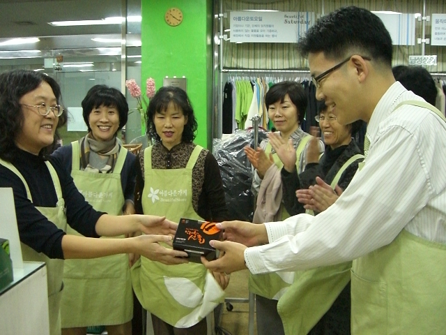 기증식은 간단히 물품 전달과 함께 이승선 목동점장의 감사장 수여로 마쳤다. 그리고 운영지원과 직원을 중심으로 참여해 기증한 물품을 가게에 전시 및 정리하는 시간도 가졌다.
