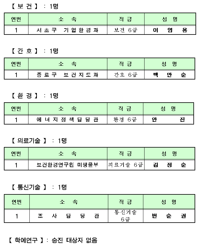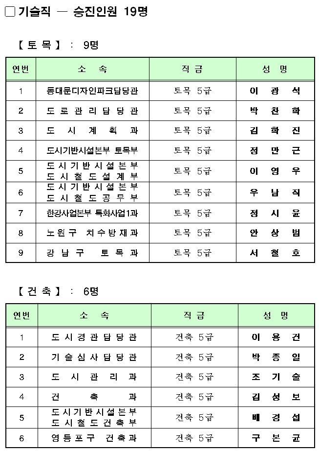 이와 관련해 정순구 행정국장은 “이번 승진은 실, 국 주무부서에서 근무하는 직원들이 상대적으로 승진에서 유리했던 관행을 깨고 민선4기 주요핵심 사업을 구체적으로 실현하는데 공로가 큰 직원, 특히 아이디어나 감동으로 시민고객 행복과 시정발전에 기여한 직원을 중심으로 이뤄졌다”며 앞으로도 능력중심의 인사정책이 변함없을 것임을 밝혔다.