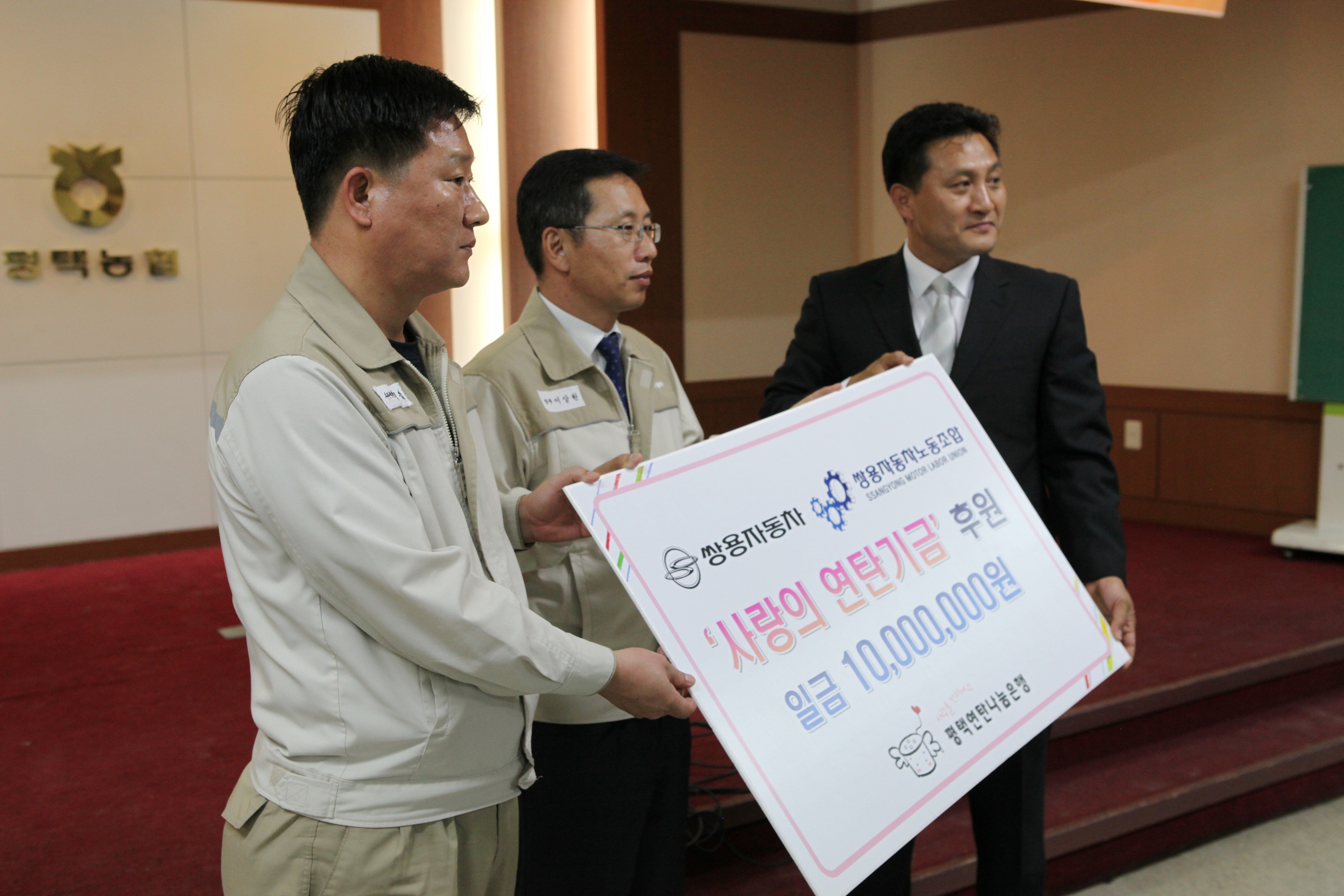 이번 행사에는 쌍용자동차 관리담당 이상원 상무, 조영갑 노동조합 사무국장을 비롯한 임직원들과 김선기 평택 시장 및 지역 단체장 등 약 50여 명이 참석한 가운데 후원금과 연탄 5,000장을 전달했다.