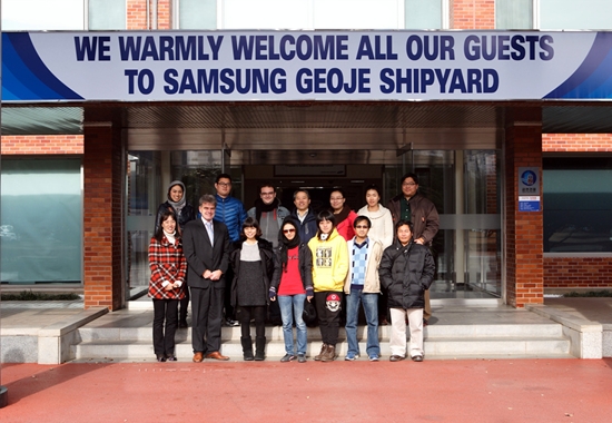 삼성중공업은 지난 15일 STC-Korea 교수 및 행정실장 그리고 그리스, 캄보디아 등의 국적으로 구성된 학생 등 총 14명이 거제조선소를 방문해 조선업 및 선박건조과정 등을 알아보는 시간을 가졌다고 밝혔다.