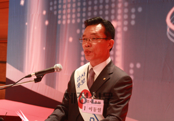 기호1번 이동일 감사후보가 소견발표를 하고 있다.