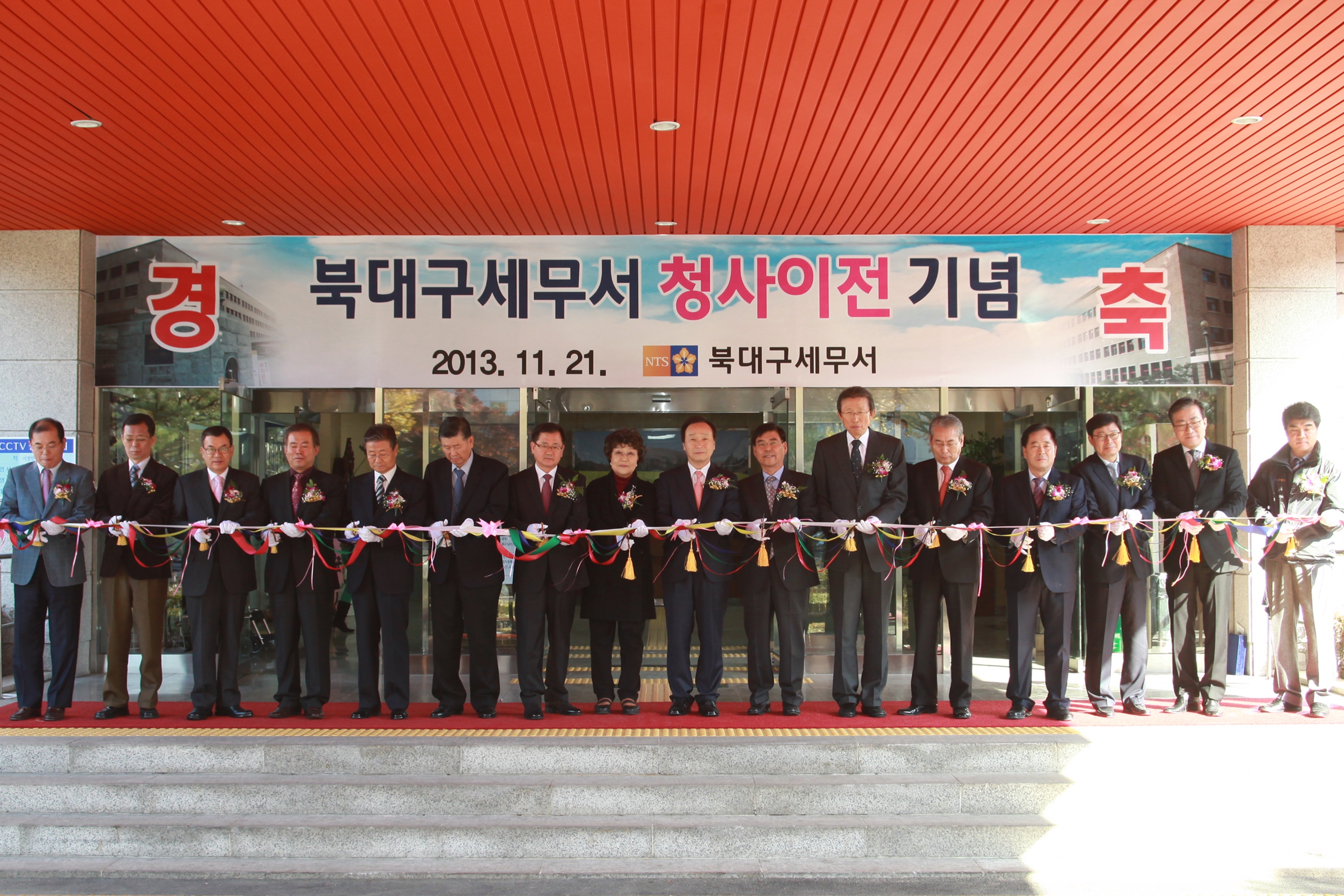 북대구세무서는 대구지방국세청이 지난해 12월 정부지방합동청사로 이전을 하게 되자 이에 따른 유휴청사를 안정행정부로부터 계속사용 승인을 받아 올해 8월부터 노후배관 교체, 엘리베이터 확장 및 지하연장, 상설 전자신고 창구 설치 등의 공사를 착공하여 11월 5일 지하1층 지상4층 연건평 5,635㎡(1,705평)청사를 리모델링 해 이날 기념식을 갖게 된 것이다.