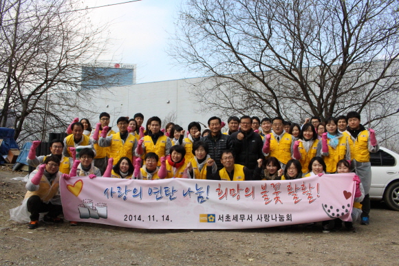 이번 봉사에서는 서초세무서장을 비롯한 세무서 직원 50명이 양재동을 비롯해 원지동에 거주하는 독거노인과 기초생활수급자 가구에 연탄 2,000장을 구입해 직접 배달했다.
