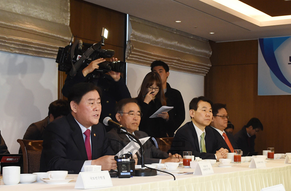이날 간담회는 내년도 경제운용방향 발표를 앞두고 주요 연구원장의 제안을 듣기 위해 마련됐으며 김준경 KDI원장, 김도훈 산업연구원장, 정진호 한국노동연구원 연구관리본부장, 윤창현 한국금융연구원장, 하태형 현대경제연구원장, 옥동석 한국조세재정연구원장, 황규호 SK경영경제연구소장, 최병호 한국보건사회연구원장, LG경제연구원장, 김경환 국토연구원장 등이 참석했다.