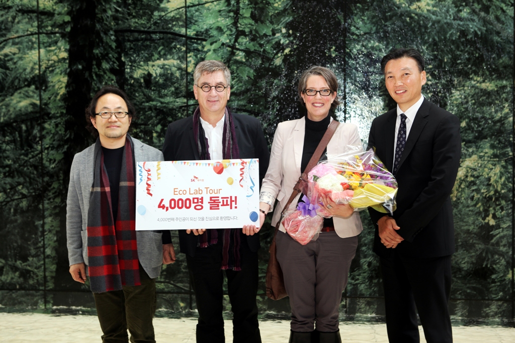 4천번째 손님은 독일의 친환경 건축물 설계 사무소 K2로 SK케미칼은 대표 요아킴(Joachim Kranendonck)에게 꽃다발과 축하 선물을 전달했다.