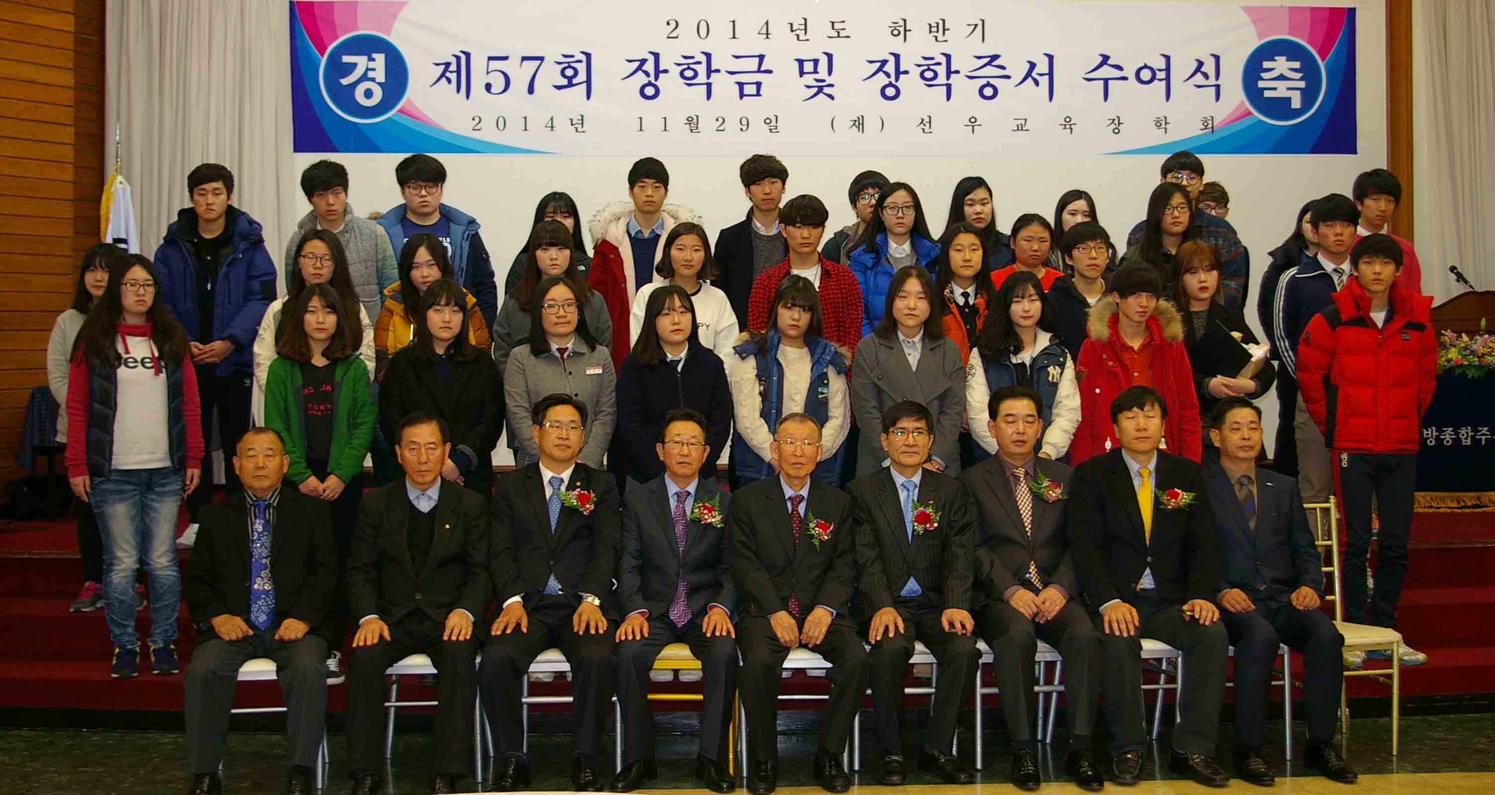 부산종합주류도매업협회가 설립ㆍ운영 중인 (재)선우교육장학회(이사장ㆍ최수옥)는 지난달 29일 부산일보사 10층 대강당에서 ‘제57회 장학금 및 장학증서 수여식’을 가졌다.