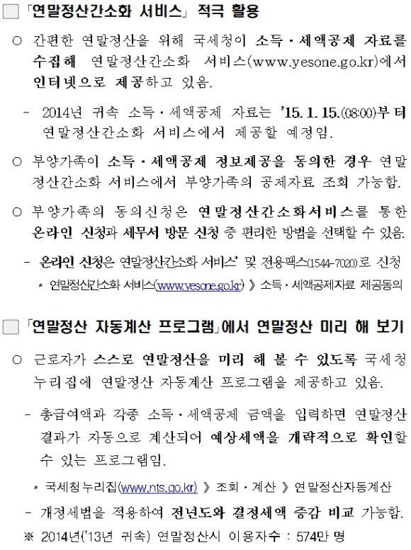[연말정산]국세청이 제공하는 편의서비스 활용법