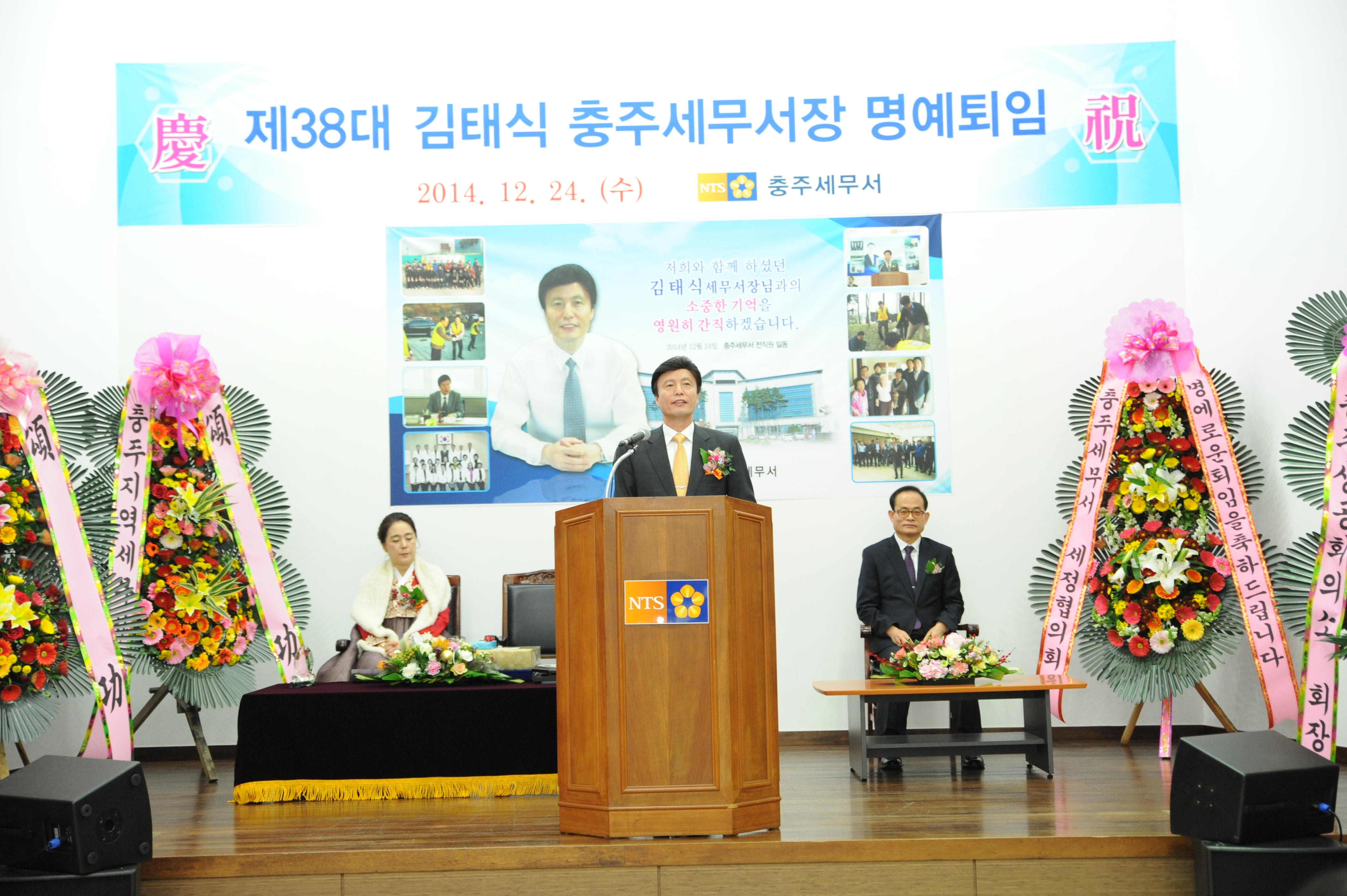 김태식 충주세무서장은 24일 오전 10시 30분 본서 3층 대회의실에서 전 직원과 가족, 친지, 내외빈 등이 참석한 가운데 명예퇴임식 행사를 가졌다.